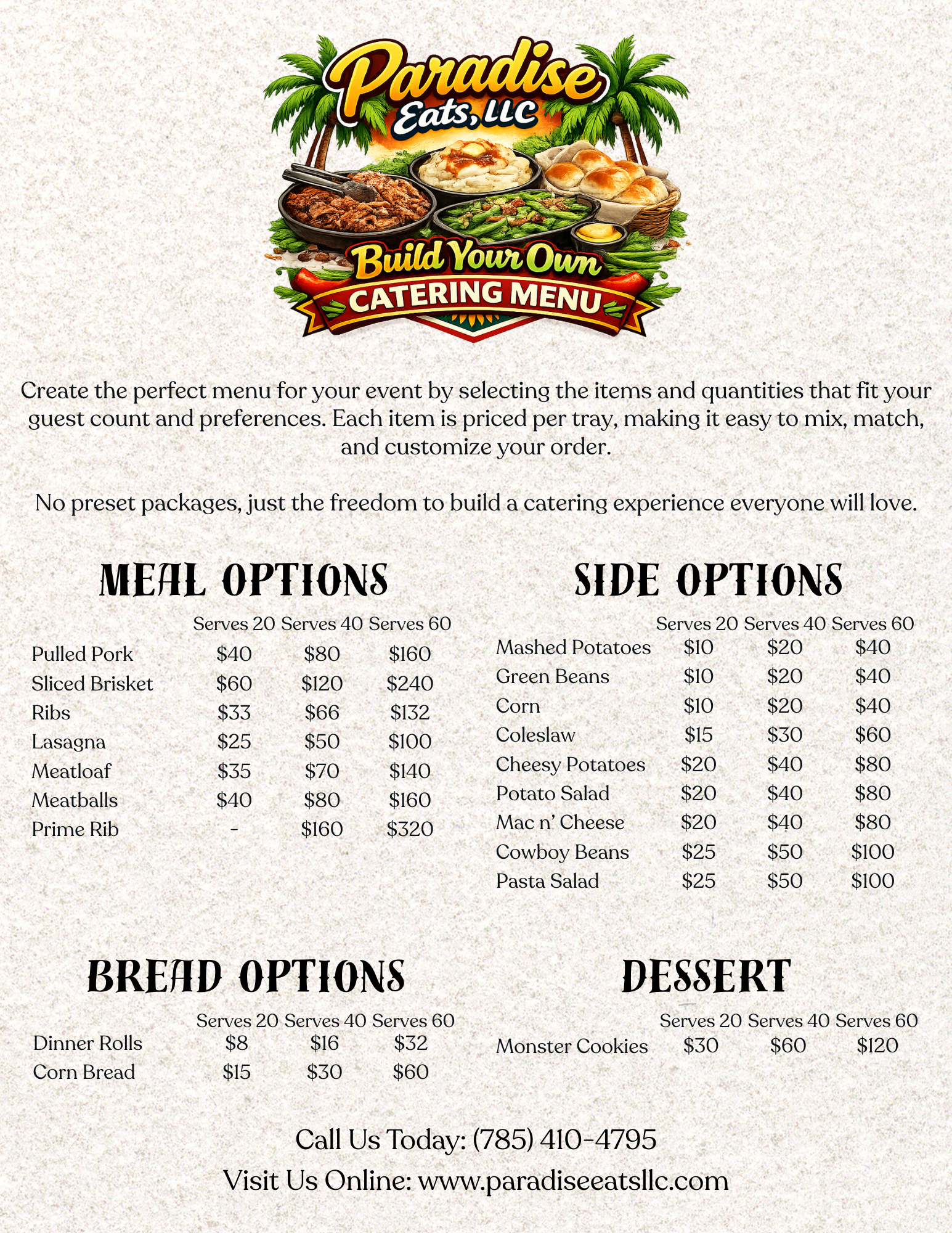 Paradise Eats makes catering simple, delicious, and fully customizable for any event. Whether you’re hosting a party, meeting, wedding, or special celebration, our catering bars are designed to please every crowd.